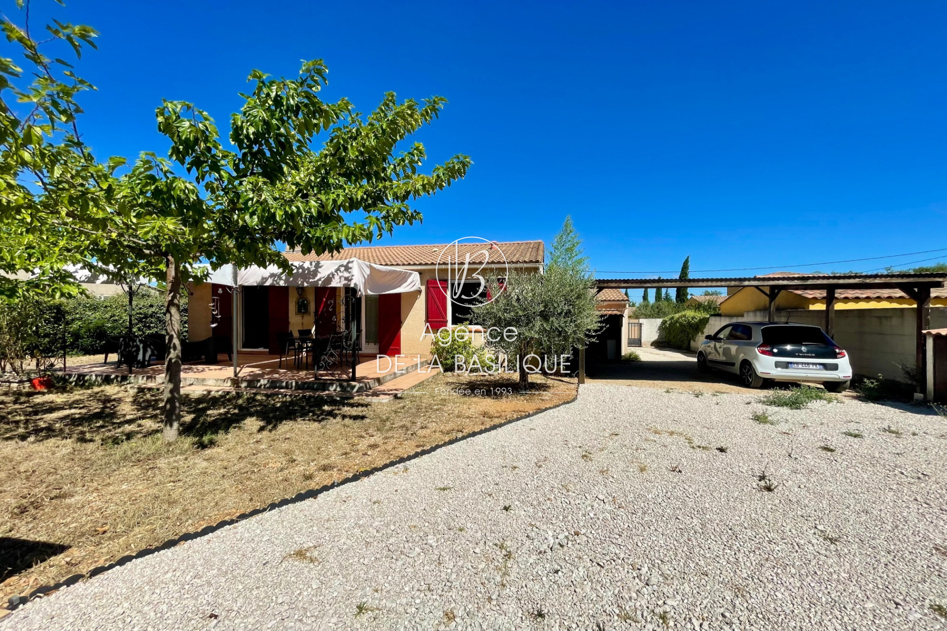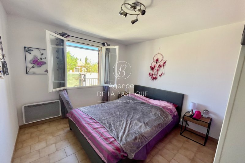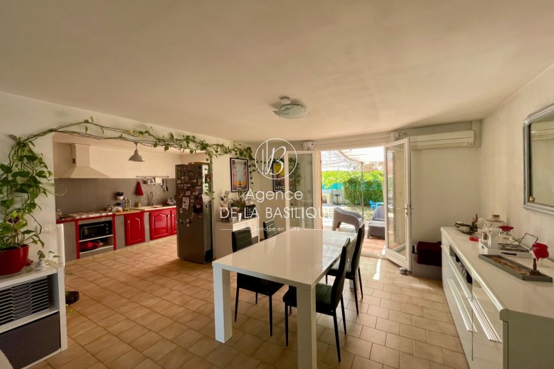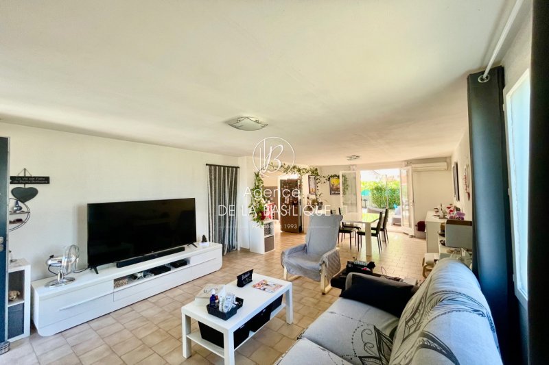 Villa proche du centre-ville à pied, dans un quartier calme. Elle a été construite en 1987 et offre environ 80 m² de surface habitable. Elle se compose d'un salon-séjour, d'une salle à manger, d'une cuisine équipée, de trois chambres avec placards intégrés, d'une salle d'eau et d'un WC indépendant. Orientée plein sud, elle dispose d'une jolie terrasse d'environ 20 m², d'un garage de 15 m² et d'un car-port pouvant accueillir deux véhicules. Le jardin est plat et arboré. Fenêtres en bois double vitrage, climatisation réversible, tout-à-l'égout, eau de ville.