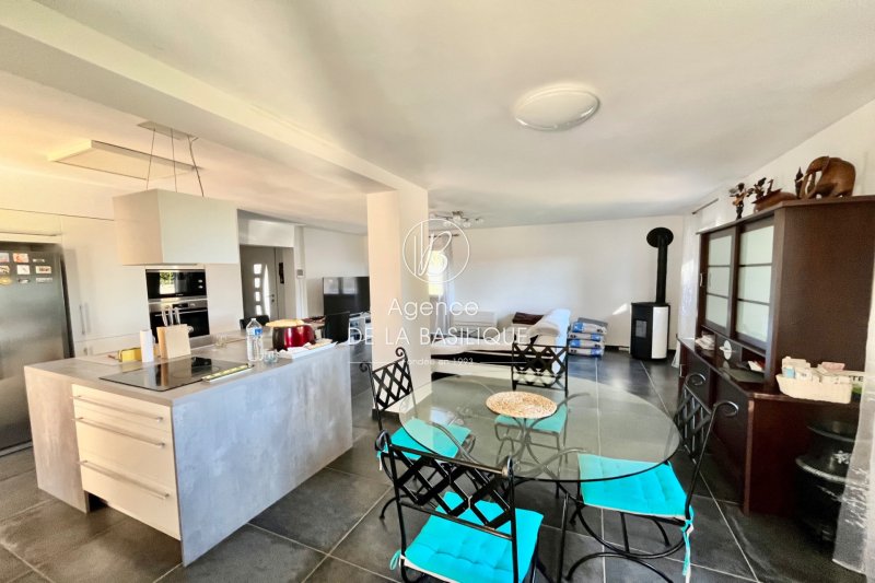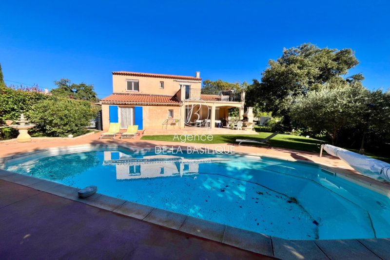 Maison familiale d'environ 130 m² habitables, édifiée sur un terrain de 780 m², offre un cadre de vie confortable et chaleureux au calme absolu. Au rez-de-chaussée, un hall d'entrée mène à une spacieuse pièce de vie composée d'un salon-séjour et d'une salle à manger ouverte sur une cuisine entièrement équipée. Ce niveau comprend également une suite parentale avec sa salle d'eau et ses toilettes, idéale pour une vie de plain-pied. À l'étage, deux chambres offrent de beaux volumes, avec la possibilité d'en aménager une troisième selon les besoins. On y trouve également une salle de bains, des toilettes séparées et une belle terrasse permettant de profiter d'une vue dégagée sur la Sainte Baume. À l'extérieur, le terrain arboré et clos accueille une piscine au brome de 10 mètres par 4, équipée d'une pompe à chaleur, parfaite pour se détendre en toute saison. La maison dispose également d'un poêle à granulés et d'une climatisation réversible en RDC et étage, garantissant un confort optimal tout au long de l'année. Notre numéro pour une visite : 04 94 777 763 Agence de la Basilique ESTIMATION GRATUITE