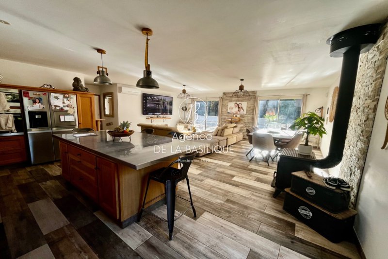 ACHAT-VENTE 83470 SAINT MAXIMIN LA SAINTE BAUME Charmante maison individuelle située au bout d'une impasse, au calme absolu et à l'abri des regards. Construite en 2016, elle est en parfait état. Elle se compose d'une belle entrée, d'un vaste salon-séjour avec cuisine ouverte entièrement équipée, orientée plein sud, d'un WC indépendant, ainsi que d'une suite parentale avec salle d'eau et grand dressing. Trois chambres supplémentaires, une salle d'eau et un grand cellier complètent l'ensemble. Le terrain plat et arboré d'environ 2 000 m² accueille une belle piscine de 10 x 4 m au sel, équipée d'une pompe à chaleur, d'un régulateur de pH automatique et d'une alarme, ainsi qu'une cuisine d'été entièrement équipée. Le terrain est entièrement clôturé et dispose d'un portail électrique. Fosse septique aux normes. Aucun travaux à prévoir pour cette charmante maison, où le mélange de l'ancien et du moderne est particulièrement réussi.