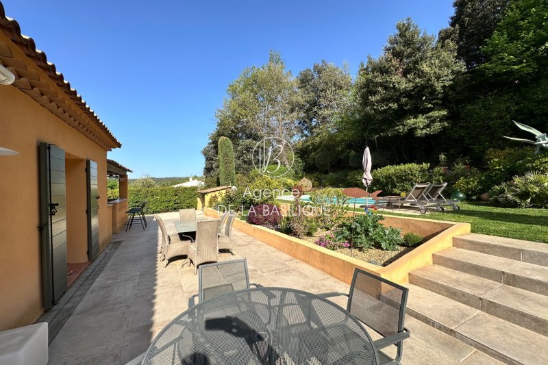 EXCLUSIVITÉ, PROPRIÉTÉ D'EXCEPTION 83470 Magnifique propriété, atypique et parfaitement bien entretenue alliant modernité et charme sur 1620 m² de parcelle arborée et paysagée Sublime villa traditionnelle. Conçue avec des matériaux nobles, elle dégage une atmosphère chaleureuse et son côté atypique provoque le coup de coeur. D'environ 190 m² habitables, elle dispose de beaux volumes dans la pièce de vie avec une agréable hauteur sous plafond et une cuisine accueillante ainsi que plusieurs espaces cocooning... Essentiellement de plain-pied, elle correspond à toutes vos attentes Grace à un salon séjour intime bénéficiant d'une superbe cheminée ''Gauthey'', un coin réception pour prendre l'apéro sous les étoiles grâce au toit vitré, un espace bureau intégré, une ''MASTER ROOM'' d'environ 40 m² comprenant dressing, salle d'eau, et wc. Dans le pole opposé, une buanderie ainsi que deux autres chambres, une salle de bains avec douche et baignoire ainsi qu'un wc. À l'étage, une belle chambre avec accès tropézienne privée et des toilettes. Implantée sur un magnifique jardin entièrement paysagé avec des plantes méditerranéennes, avec de belles et grandes terrasses bénéficiant de stores Bannes automatisés avec LED intégrés, une cuisine d'été avec plan de travail en pierre de cassis et une jolie piscine ensoleillée pompe neuve filtration au sel : Tout est idéalement imaginé pour passer de belles journées d'été !!!!!! Pour finir, on découvre un garage indépendant de 18 m². L'accès est goudronné pour un confort optimum et l'îlot de verdure devant la maison, vous invite à la détente sous les micocouliers COUP DE COEUR ASSURÉ