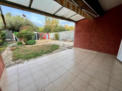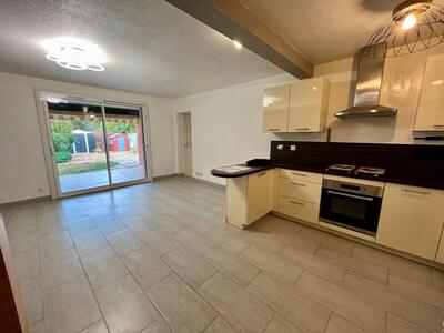 L'intérieur se compose d'un hall, d'un WC indépendant, d'une cuisine équipée ouverte sur un séjour lumineux et climatisé. Cet espace de vie convivial s'ouvre sur une agréable terrasse couverte exposée sud-ouest, prolongée par un jardin privatif de 100 m², sans vis-à-vis, parfait pour recevoir, jardiner ou se détendre.