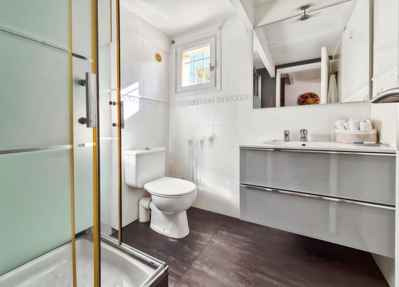 La maison, entièrement de plain-pied, se compose d'un agréable salon-séjour avec cheminée, d'une cuisine aménagée et équipée, d'une chambre principale, d'un bureau, ainsi que d'une salle de bains avec douche. Une chambre mansardée disposant de sa propre salle d'eau vient compléter l'ensemble. Toutes les pièces sont équipées de la climatisation, assurant un confort optimal toute l'année.