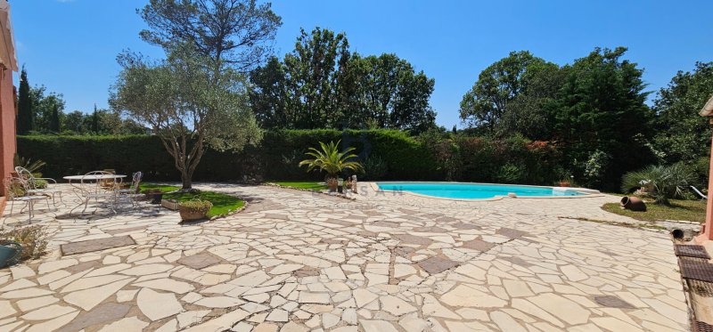 Cette villa se compose d'un hall d'entrée, séjour avec cheminée donnant sur piscine, cuisine aménagée donnant sur patio, vestibule avec wc, buanderie, 2 chambres, salle de bains.
