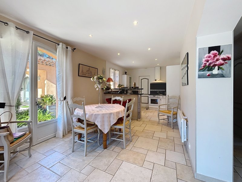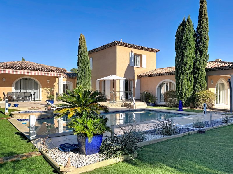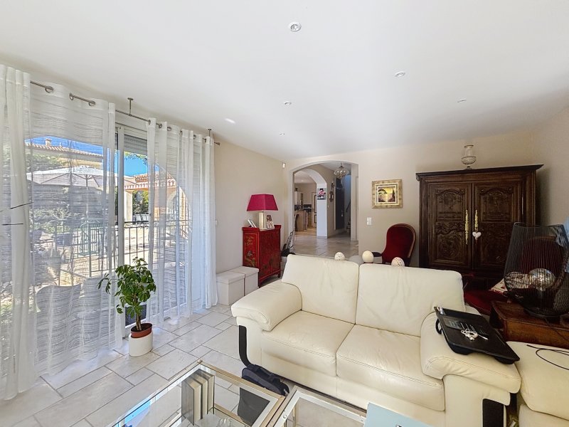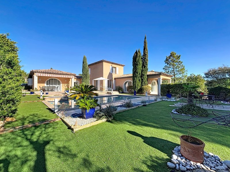 Andélim Agence des Golfs - 04 83 12 06 26 Dans un environnement privilégié entre mer et estérel, cette villa est située dans quartier résidentiel prisé à seulement quelques minutes des plages d'Agay et à proximité des golfs de valescure. Cette néoprovençale qui développe 205 m2 sur une parcelle de 1363 m2, offre plusieurs espaces de vie parfaitement agencés, et articulés autour de deux ailes distinctes offrant une modularité rare. L'aile principale se caractérise dès l'entrée par une lumière omniprésente, des volumes généreux et une harmonie des espaces qui séduisent immédiatement. Le séjour de 42 m2 avec cheminée invite à la convivialité, tandis que la cuisine ouverte prolonge naturellement les espaces de vie. La suite parentale avec son espace bureau offre un cocon intime et apaisant. À l'étage, deux chambres lumineuses, une salle de bain et un wc indépendant, accueillent famille et invités avec confort. Le T2 indépendant, entièrement équipé avec entrée privative et terrasse, constitue un atout rare : idéal pour recevoir en toute discrétion, exercer une activité professionnelle ou générer un revenu locatif. À l'extérieur, le terrain paysager de 1 360 m2 exposé plein sud sans vis-à-vis dévoile un art de vivre typiquement méditerranéen : piscine avec jacuzzi, terrasses ensoleillées, patio ombragé, terrain de pétanque... chaque espace a été pensé pour savourer chaque instant. Un bien rare, élégant et chaleureux, qui ne laisse personne indifférent.