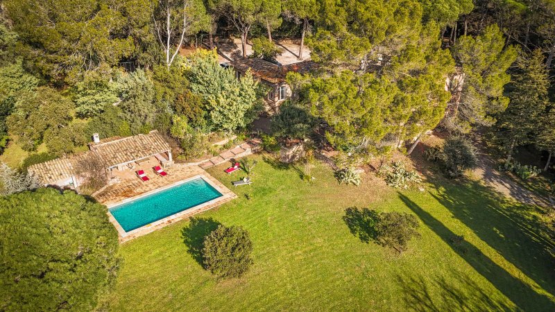 Le jardin paysager de plus de 10 000 m² accueille une grande piscine avec pool house, deux box pour chevaux, plusieurs forages assurant l'autonomie en eau, un garage fermé et une cave à vin.