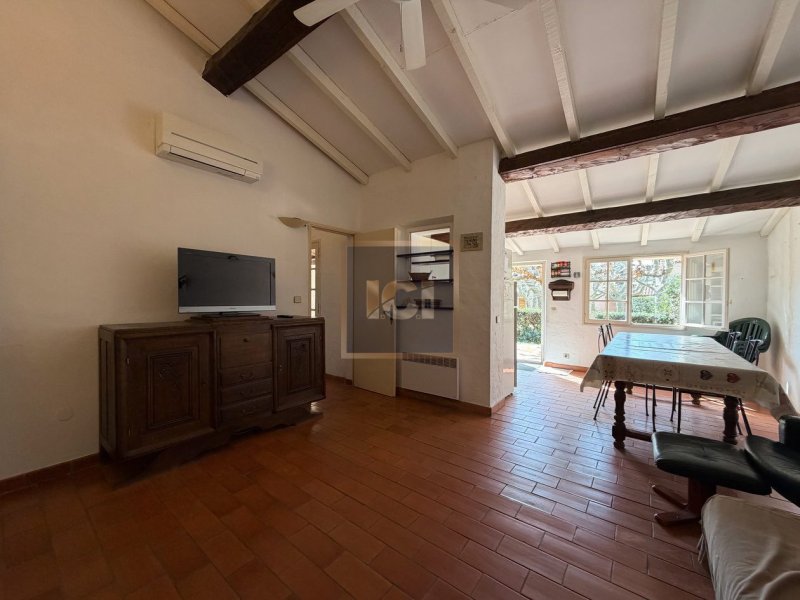 Situé au sein d'un domaine sécurisé, ce charmant mazet exposé plein sud se compose d'une entrée avec placards, d'une salle de bains avec WC, d'un séjour / salle à manger avec cuisine ouverte aménagée et équipée ouvrant sur une terrasse et un jardin ; l'espace nuit comprend une chambre donnant sur une terrasse couverte avec barbecue et évier, une mezzanine à hauteur non habitable, un couloir avec placards, une seconde salle d'eau avec WC et une chambre supplémentaire ; climatisation réversible et deux places de stationnement complètent ce bien, idéal en résidence secondaire ou investissement. Honoraires à la charge du vendeur. Dans une copropriété de 1 lots. Aucune procédure n'est en cours. Classe énergie C, Classe climat A Montant estimé des dépenses annuelles d'énergie pour un usage standard : entre 745.00 et 1007.00 sur les années 2021, 2022 et 2023 (abonnements compris). Les informations sur les risques auxquels ce bien est exposé sont disponibles sur le site Géorisques : georisques.gouv.fr. Votre conseiller Agence ICI : Antoine NEUVEGLISE Agent commercial (Entreprise individuelle) RSAC 952 266 294 RCP Galian