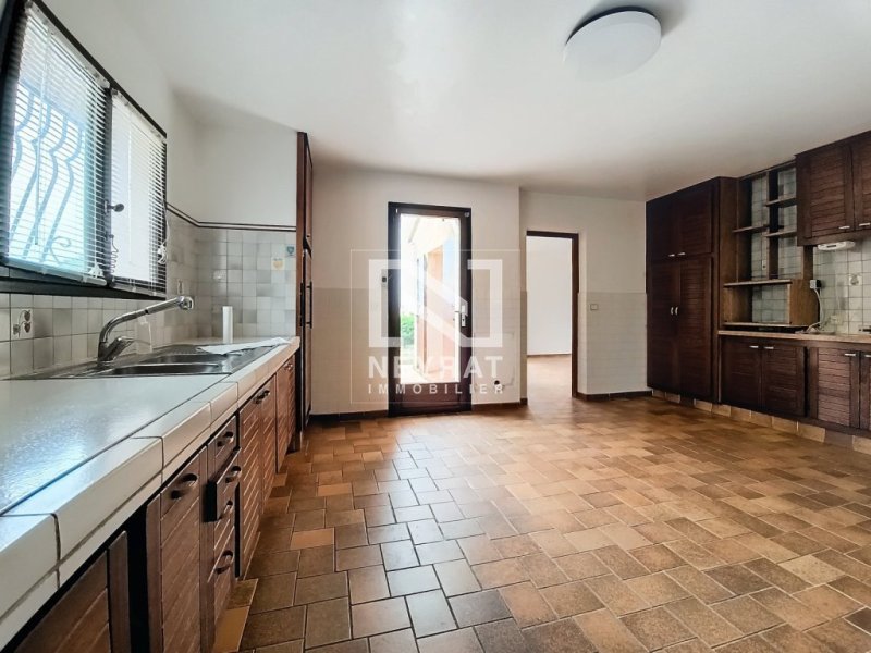 En rez-de-jardin, salon séjour de 40m² sur terrasse et jardin, cuisine de 19m², point sanitaire - WC-lavabo possibilité création douche-, nombreux placards, dépendances, cave, espace atelier