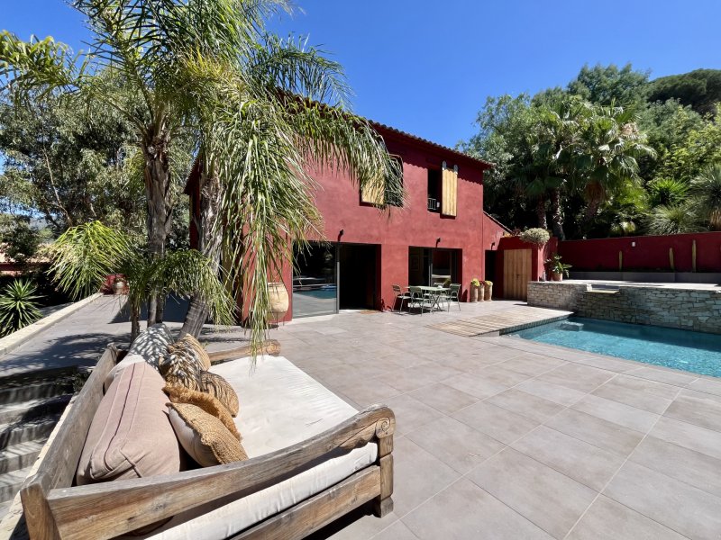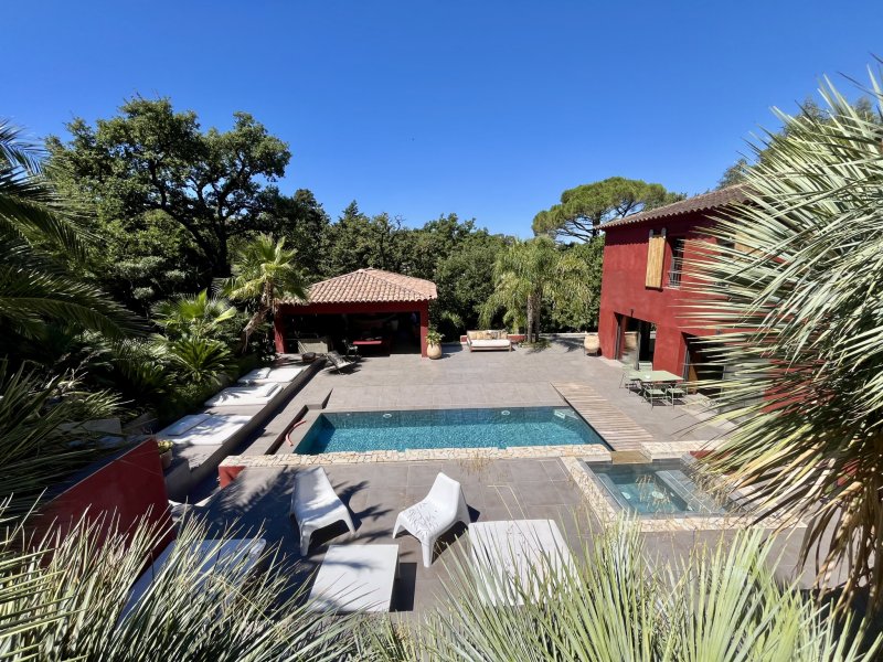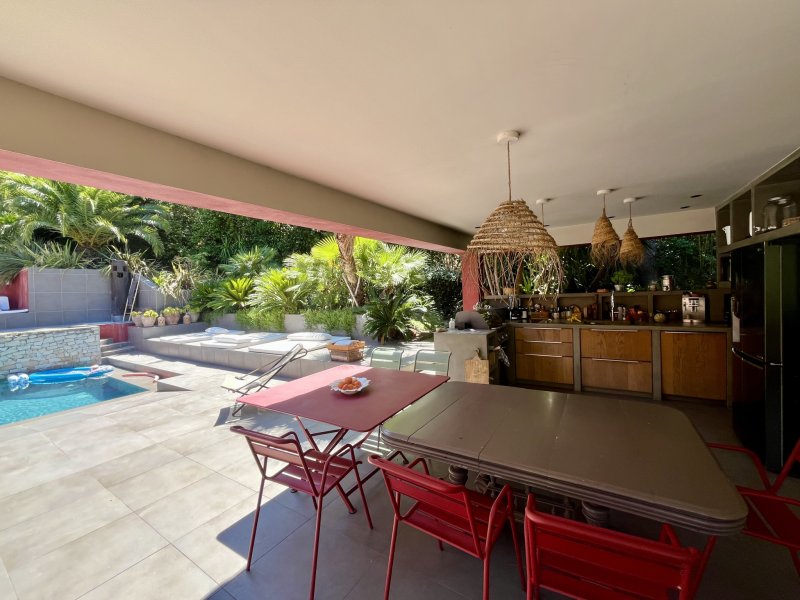 Au coeur du prestigieux quartier du Cap Brun, cette villa de 365 m2 aux allures méditerranéennes est nichée sur un terrain arboré de 4439 m2. Alliant charme, volumes et prestations soignées, elle offre un cadre de vie paisible et raffiné à quelques pas du littoral.Dès l'entrée, on découvre une atmosphère chaleureuse, portée par de beaux matériaux, une décoration élégante et une luminosité omniprésente. Le rez-de-chaussée accueille une spacieuse suite parentale avec dressing, salle d'eau et WC, ainsi qu'un WC indépendant, une grande buanderie, un espace de vie de 55 m2 regroupant salon, cuisine et salle TV, ouvert sur l'extérieur par de larges baies vitrées.À l'étage, quatre belles chambres et un vaste bureau de 22 m2 vous attendent, dont trois avec leur propre salle d'eau. Les WC y sont indépendants, pour un confort optimal.En rez-de-jardin, la maison propose un espace indépendant composé de deux chambres, d'un salon de 56 m2 et d'une salle d'eau. Une buanderie ainsi qu'une cave à vin complètent ce niveau.À l'extérieur, le charme opère immédiatement. La piscine avec jacuzzi et plage immergée s'intègre parfaitement dans l'environnement luxuriant. Le pool house, véritable pièce de vie supplémentaire, est aménagé avec une cuisine d'été et un salon détente abrité, idéal pour profiter des longues journées d'été en toute intimité.Côté stationnement, vous disposez d'un grand garage pouvant accueillir plusieurs véhicules, ainsi que d'un parking extérieur.Un bien rare, aux prestations de qualité, idéal pour une grande famille ou pour recevoir dans un cadre verdoyant, intime et privilégié.