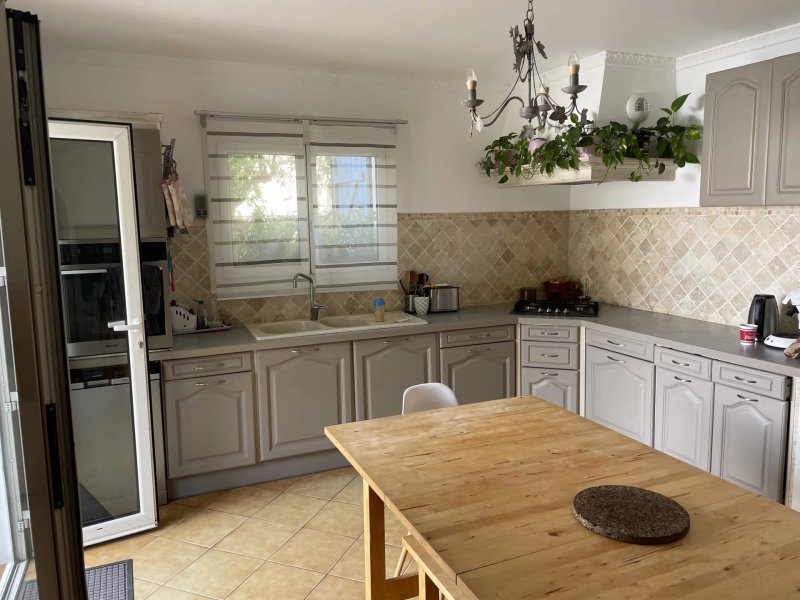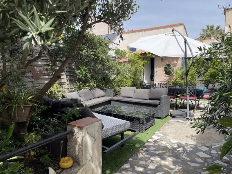 La maison de 130 m2 affre au rez-de-chaussée un séjour, une cuisine, une chambre et une salle de bain ouvrant sur une terrasse-jardin plein sud.