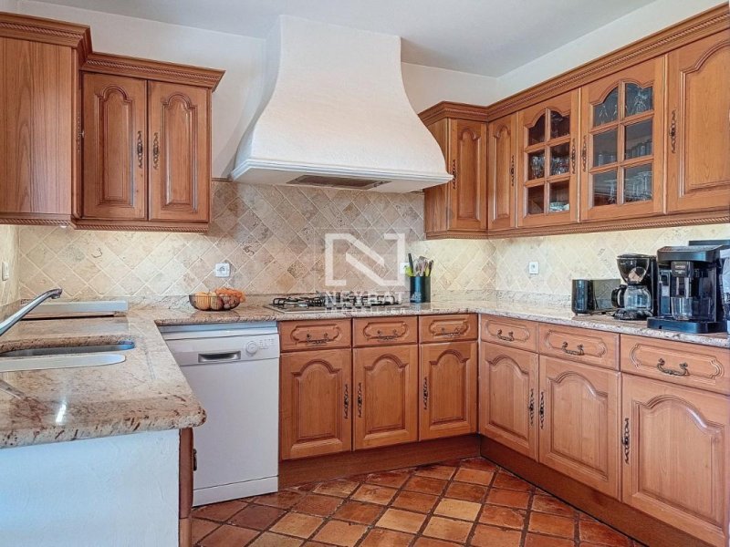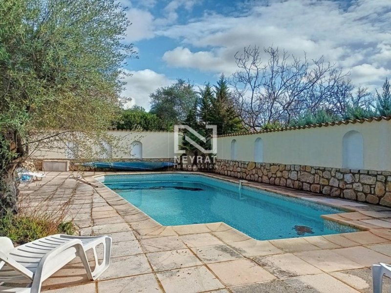 Tourrettes : Superbe emplacement au calme absolu et proches commodités, très beau panorama pour cette belle villa provençale, 5 chambres, dont 4 de plain pied, grand séjour lumineux, 2 salles de bains, garage, buanderie, atelier, cave à vin. Magnifique espace piscine clos de mur, le tout dans un jardin méditerranéen avec vue dégagée. Belle maison de famille pleine de charme. Prestations de qualité. Bus scolaire à 20 m.