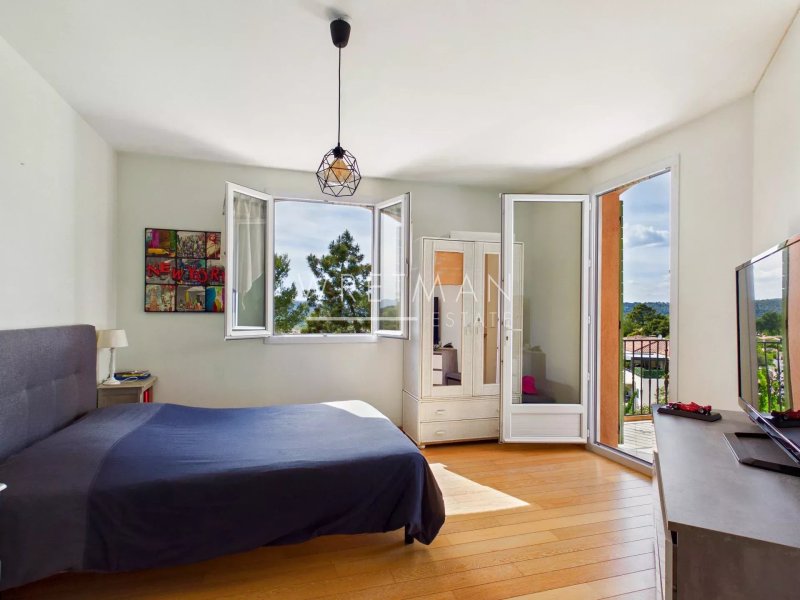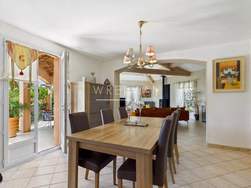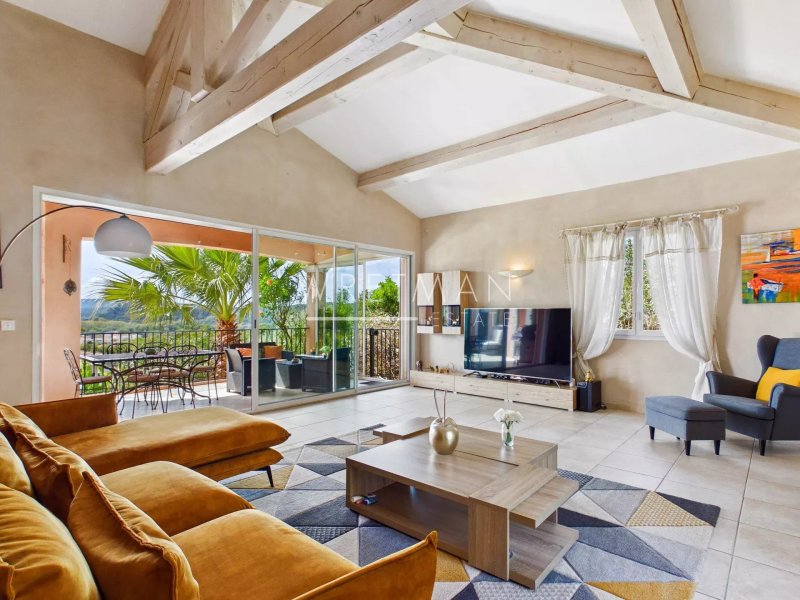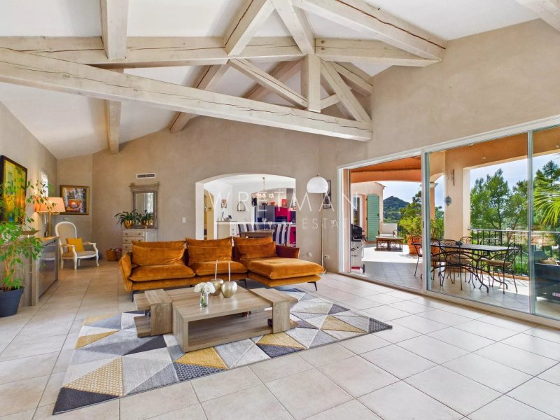L’ensemble offre une circulation fluide et de beaux espaces de réception, prolongés par une vaste terrasse couverte et bénéficiant d’une très jolie vue dégagée.