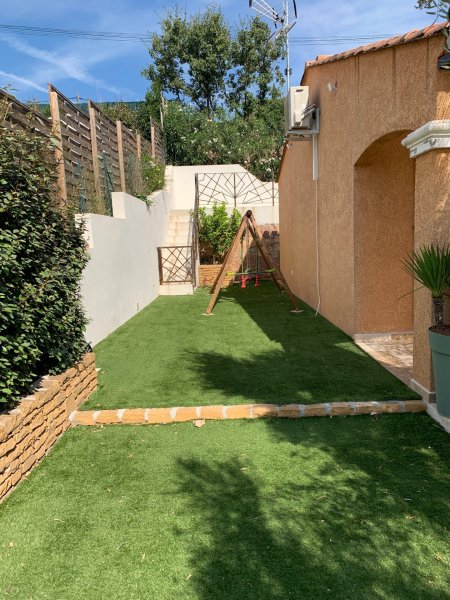 Coté jardin, 600 m2 entièrement aménagé et clôturé.