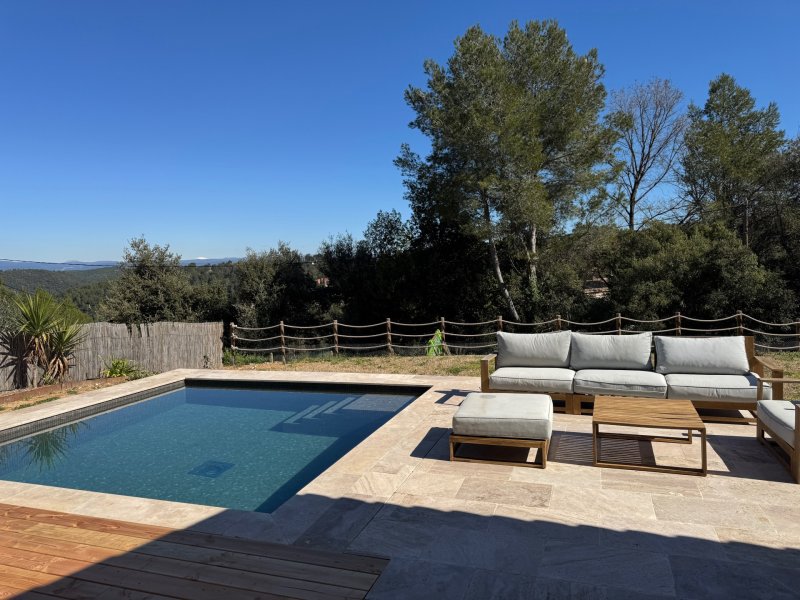 Dès l'entrée, vous serez accueilli par un hall lumineux avec un WC invité, un placard de rangement et une grande cave. La pièce de vie spacieuse, d'environ 51 m², se compose d'une cuisine ouverte sur un salon/salle à manger convivial, idéal pour recevoir vos proches. Cette pièce donne accès à une belle terrasse avec une vue dominante, où vous pourrez profiter de moments de détente au bord de la piscine.