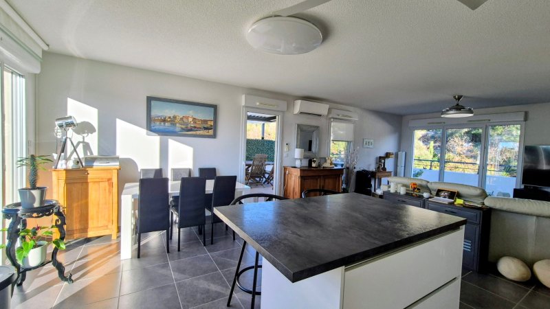 Du couloir d'entrée, vous accéderez à une magnifique pièce de vie de 39 m², sublimée par une cuisine ouverte contemporaine. Cet espace se prolonge naturellement vers une somptueuse terrasse en U de 154 m², véritable écrin extérieur bénéficiant d?une vue imprenable et dominante.