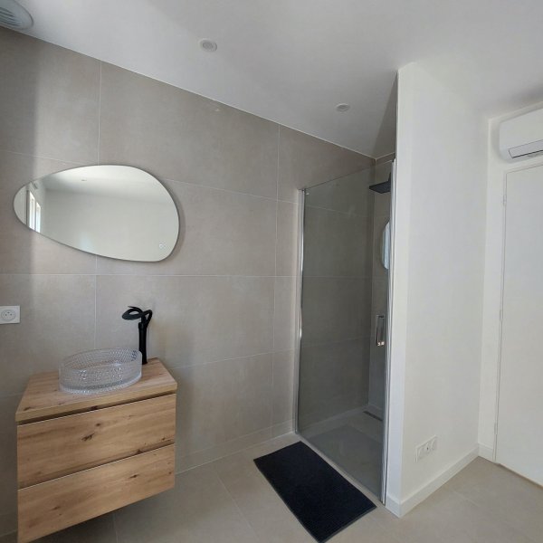 Toute la maison est équipée de climatisation réversible, de fenêtres oscillo-battantes, et répond à la norme RE 2020.
