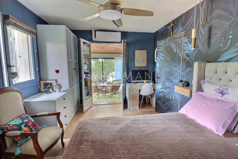 Le terrain arboré de 2 795 m², agrémenté de pins parasols et d’arbres fruitiers, accueille une piscine de 10 x 5 m., un abri voiture, un chalet avec 2 chambres climatisées, ainsi qu’une grande terrasse ensoleillée et une terrasse couverte idéale pour les repas d’été.