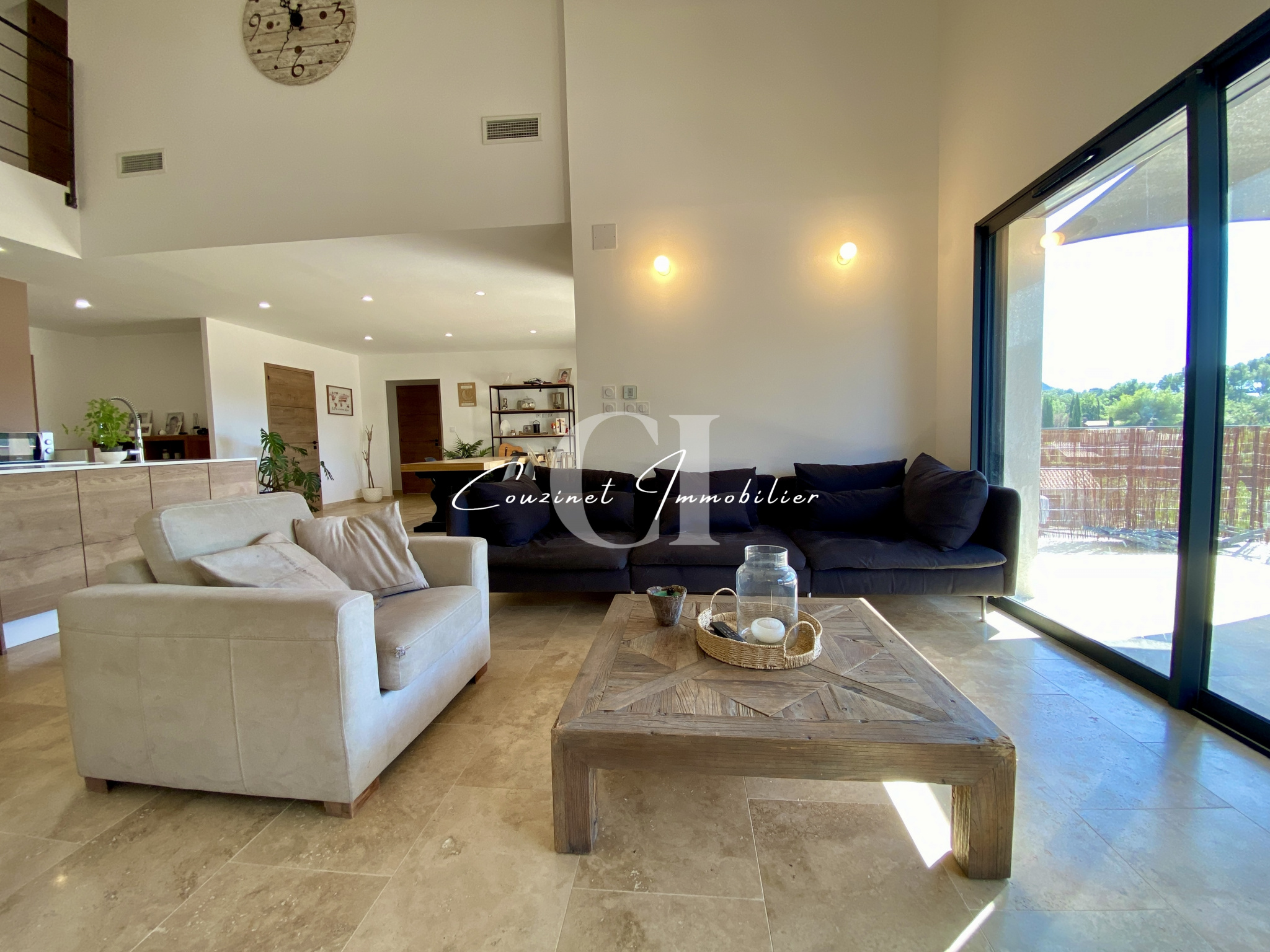 Laissez vous séduire par les prestations de cette belle villa contemporaine récente de 162 m2 habitables sur terrain clos arboré , vaste séjour et belle cuisine aménagée donnant sur terrasse en partie couverte par pergola bioclimatique électrique, 3 chambres dont une suite parentale en rez de chaussée, entièrement climatisée. Beau garage avec coin buanderie et piscine traditionnelle chauffée. ,