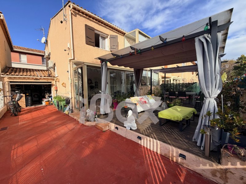 TOULON EST- MAISON DE 114 M2 3 CHAMBRES GARAGE ET TERRAIN DE 246 M2 Dans un lotissement au calme, venez découvrir cette maison en état impéccable comprenant au rez-de-chaussée : véranda, cuisine aménagée et équipée, double séjour avec cheminée, wc indépendant, buanderie. A l'étage : 3 chambres avec placard dont une donnant sur une loggia, salle d'eau, wc indépendant. Garage attenant et terrain de 246 M2 bien exposé avec 2 grandes terrasses. LES PLUS : possibilité de stationner plusieurs véhicules, spacieuse, bon état, double vitrage, climatisation réversible, calme, adoucisseur, forage