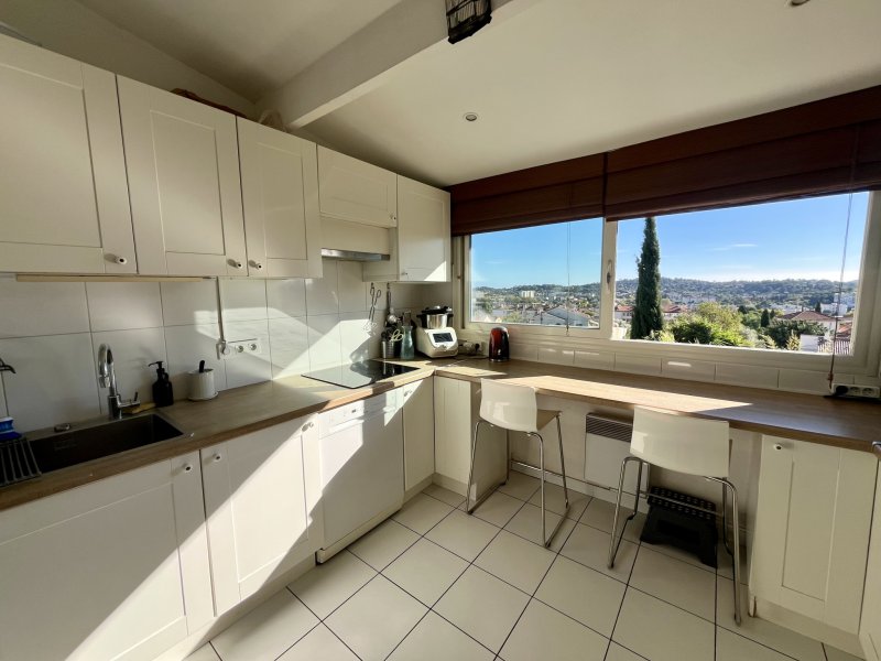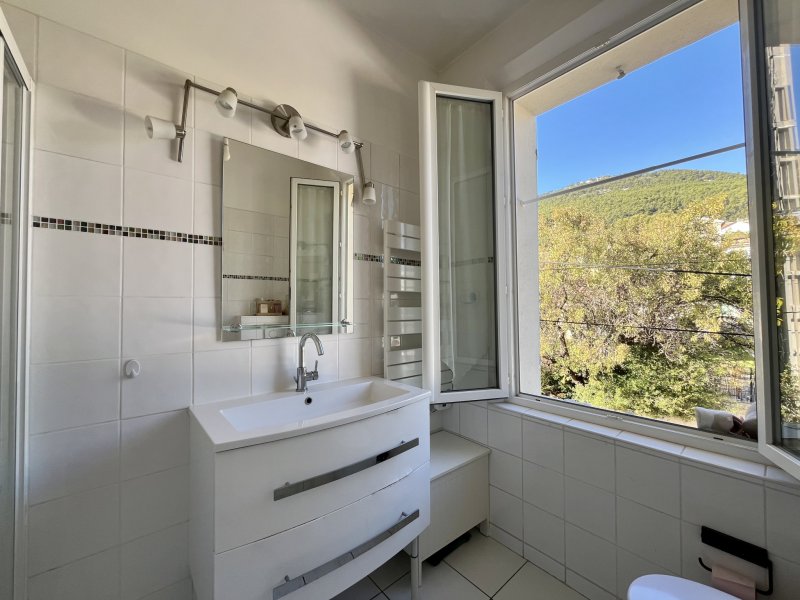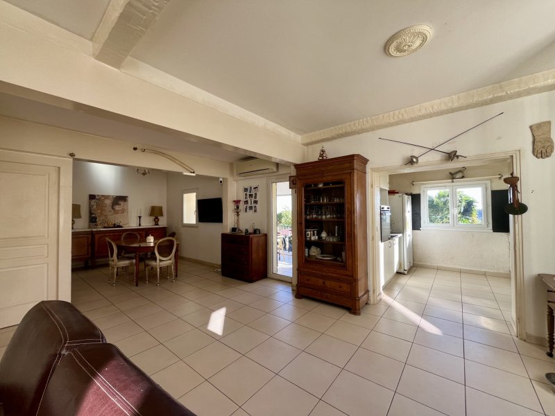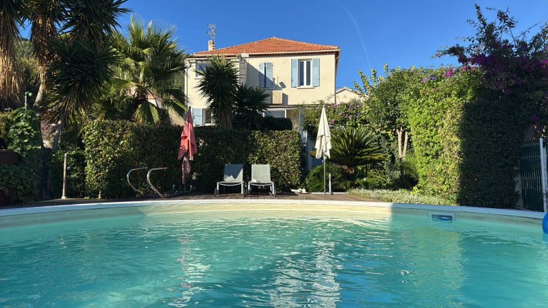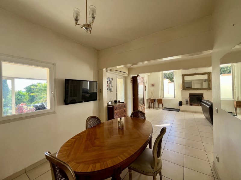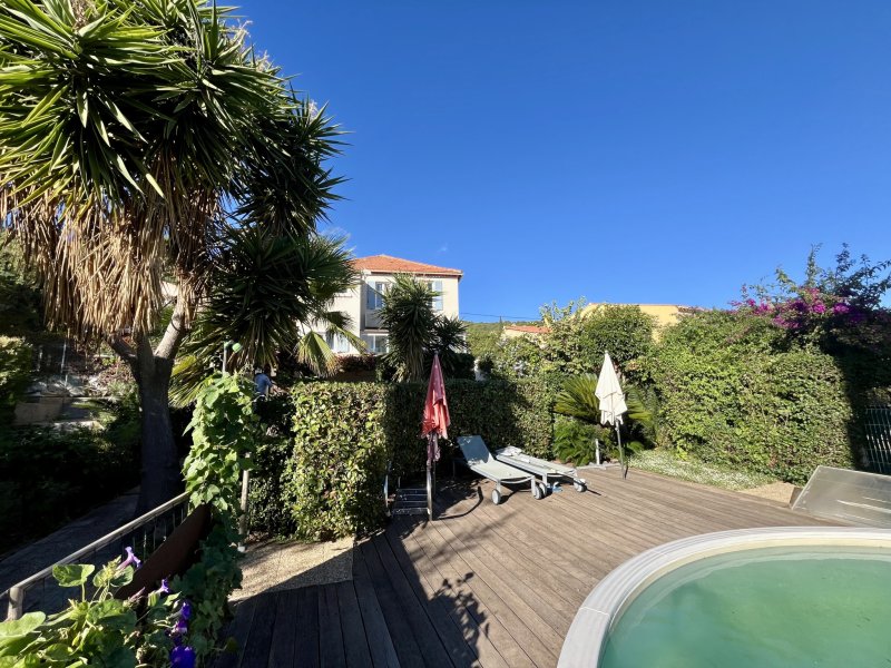 Secteur recherché Élisa / La Pivotte, maison lumineuse de 162 m2, plein sud, offrant une superbe vue mer. Composée de deux appartements facilement réunissables en une seule habitation familiale. Le 1er étage, entièrement rénové avec goût, dispose d'un séjour de 30 m2, cuisine, bureau, salle d'eau avec wc, cellier et deux chambres dont une suite parentale. Le rez-de-chaussée, à rafraîchir, comprend un séjour-cuisine de 30 m2, deux chambres, salle de bain, WC et véranda ouvrant sur un jardin arboré et paisible. Terrain de 650 m2 avec terrasse, piscine, puits, deux caves et stationnement intérieur. Un bien rare alliant vue, calme et potentiel.