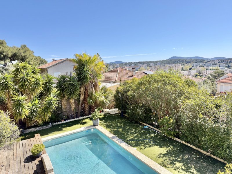 Toulon Est - Bas Faron, dans un secteur résidentiel, arboré et proche des commodités, retrouvez cette maison 7 pièces de 173m2 habitable avec garage, piscine et dépendance. Elle dispose d'un espace de vie de près de 70m2 avec cuisine ouverte et équipée. A l'étage on retrouve 3 chambres dont une suite parentale avec dressing, salle d'eau et accès à un terrasse disposant d'une magnifique vue dégagée. Le dernier niveau dispose d'un bureau, d'un dressing et d'une chambre en enfilade. Tout confort, elle dispose du double vitrage, de volets roulants électrique, de la climatisation réversible, d'une cheminée avec insert, de la fibre optique, d'une exposition plein Sud... Possibilité d'aménager une dépendance de 17m2 dans le jardin. La piscine est au chlore. Taxe foncière : 1735EUR Contact direct : Théo Nobili - 07 60 07 56 47