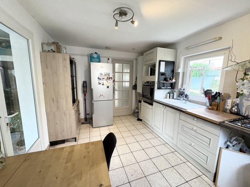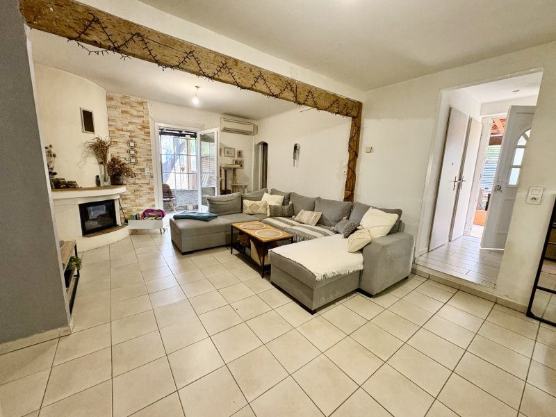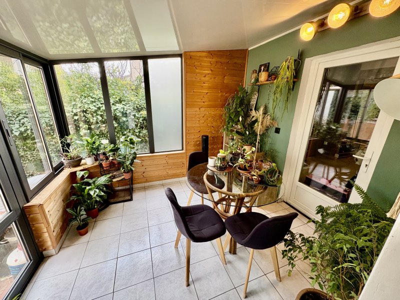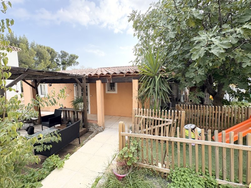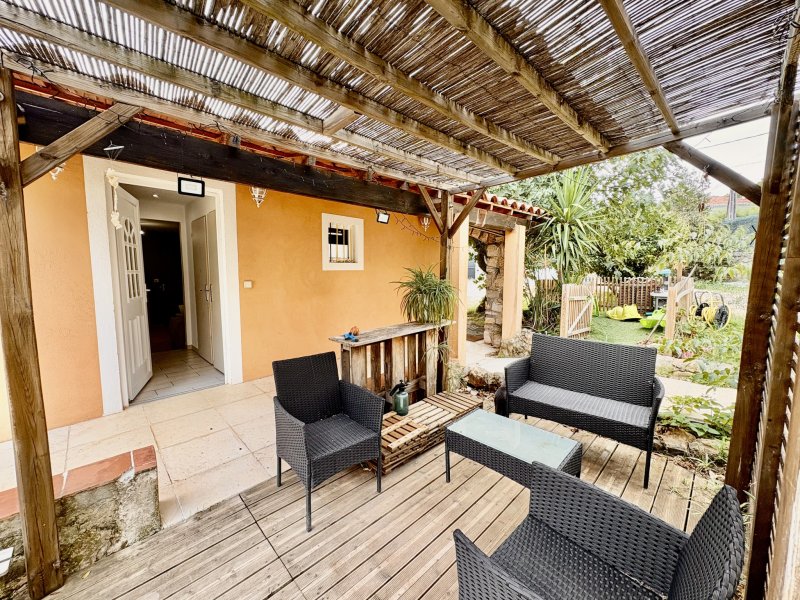 Les 4 chemins des Routes, coquette maison individuelle de PLAIN PIED sur un terrain de 255 m2 composée d' une entrée , cuisine donnant sur une jolie veranda, une salle de sejour avec cheminée donnant sur un jardin d' hiver , deux chambres, un dressing/buanderie, salle de bain et wc séparé Terrasse et jardinet double vitrage, volets roulants electriques, climatisation quelques finissions exterieur à prévoir