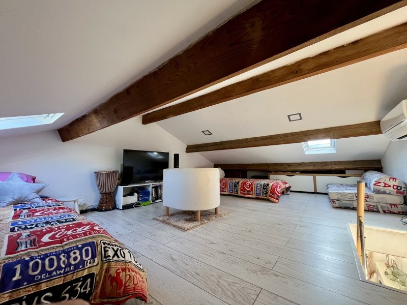 TOULON OUEST- HAUT DE VILLA T3, situé dans un secteur calme et recherché des Routes, venez découvrir ce haut de villa lumineux et paisible. Il se compose : d'une cuisine ouverte sur salon donnant sur un balcon exposé SUD, 2 chambres, salle d'eau avec wc et des combles aménagés de 25m2 au sol. Jardin privatif d'environ 290m2 avec piscine, possibilité de stationner une voiture. Une dépendance aménagée en studio de 20m2 ainsi qu'une cave viennent compléter ce bien. Rare sur ce secteur !!!