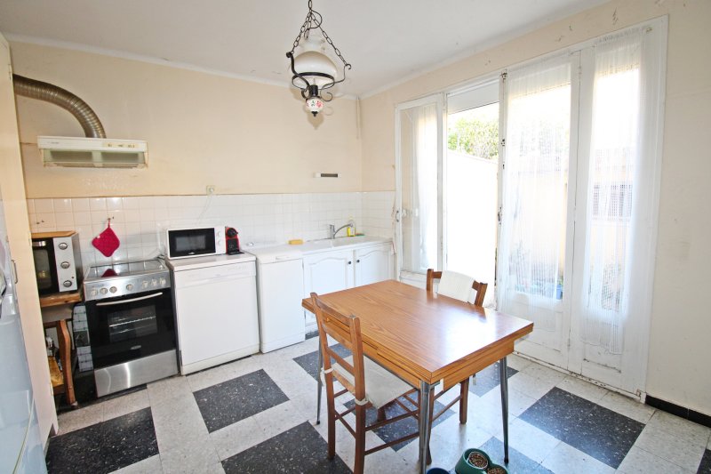 Située à Toulon Ouest, quartier des Moulins, limite Revest, une maison mitoyenne de type 4 de 82 m2 habitables à rénover offrant un beau potentiel, La maison se compose au rez-de-chaussée d'un salon, d'une salle à manger et d'une cuisine séparée. A l'étage, un dégagement, trois chambres (de 9 m2, 10 et 12 m2), une salle de douche et WC séparé. A l'extérieur, un jardin arboré avec une terrasse ombragée, un WC extérieur, un garage avec électricité. Possibilité de stationner deux voitures sur le terrain. Proche des commodités et écoles. Ce bien est un lot de copropriété. Nombre de lot : 4. Pas de charges. Prix de vente : 300 000 EUR honoraires d'agence inclus à la charge du vendeur. Les informations sur les risques auxquels ce bien est exposé sont disponibles sur le site Géorisques : www.georisques.gouv.fr