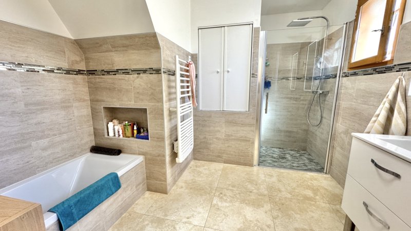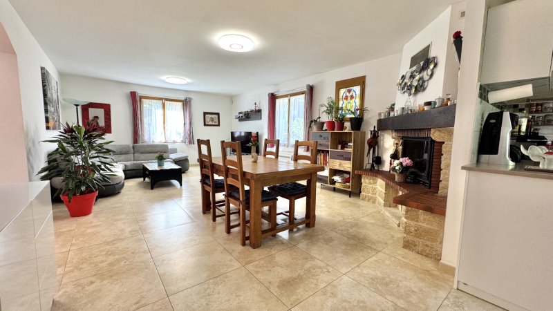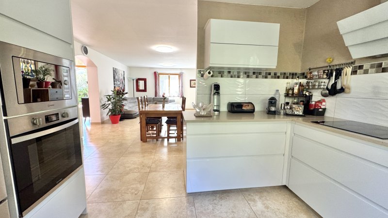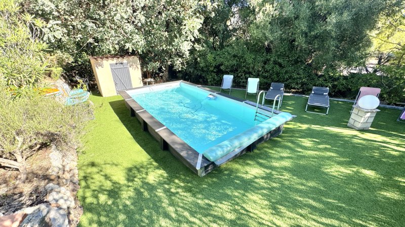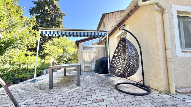Toulon proche de La Valette, Villa T5/6 en excellent état d'environ156 m2 au sol Entrée desservant un très bel espace à vivre avec cuisine entièrement aménagée et équipée ouverte sur séjour. 2 chambres de plain pied avec penderie, salle de bains avec douche, Wc indépendants. A l'étage une chambre avec penderie donnant sur terrasse, salle d'eau, Wc indépendants. Une dépendance à hauteur du garage a été aménagée en chambre de 16 m2. Vaste garage, Wc, cave et vide sanitaire de rangement Piscine semi enterrée sécurisée sur parcelle arborée de 1289 m2 A voir rapidement