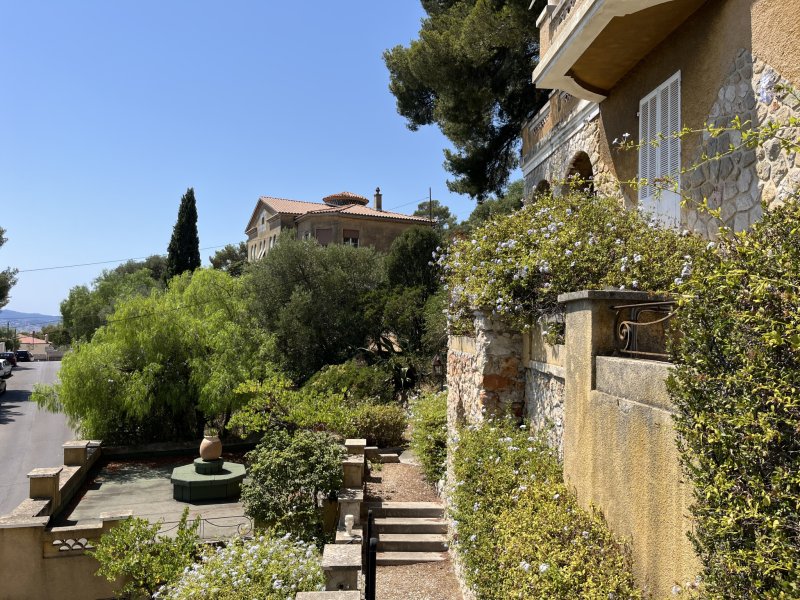 TOULON FARON - Située dans un secteur prisé en position dominante sur les hauteurs de la ville, magnifique maison ancienne des années 30, avec fort potentiel et incroyable vue panoramique à 180o sur la mer et la Rade. La propriété bénéficie d'un terrain en restanques de plus de 2000 m2 comprenant un cabanon faisant office de dépendance et un double garage de 40 m2. Elle se compose au rez-de-chaussée de 3 chambres dont une avec salle d'eau, une buanderie, 2 celliers et une salle de bains, WC ; à l'étage vous trouverez 2 autres chambres, un grand espace de vie donnant sur une grande terrasse, une cuisine, une salle de bains et un WC. Le calme et la tranquillité sous les pins ombragés font de ce bien un lieu de vie unique et rare.