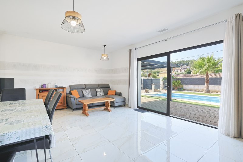 JCG Immo : située dans un quartier calme, sans nuisances, sans vis-à-vis, sans travaux et exposée plein sud ! Retrouvez cette villa indépendante construite en 2020, bénéficiant de prestations haut de gamme, habitable entièrement de plain-pied pour une surface de 110 m2 T4 avec terrain de 719 m2, sous-sol aménageable de 110m2, piscine, pergola bioclimatique et 2 carports. À l'intérieur : une entrée avec placard donnant sur une pièce de vie de 50m2 comprenant salon, salle à manger et cuisine ouverte Bollery sur mesure. Mais également un poêle à bois et une climatisation gainable avec des bouches de souflage dans l'intégralité de la maison. L'ensemble du séjour s'ouvre sur l'avant de la propriété avec notamment l'espace terrasse équipé d'une pergola bioclimatique, d'une piscine coque 6/3 chauffée avec système de nage à contre-courant et des plages entourant le bassin. Le bien comprend également une suite parentale, soit une pièce équipée d'un placard, d'une douche, d'une double vasque et d'un WC, cette première chambre s'ouvrant directement sur le jardin. Puis un dégagement desservant deux autres chambres avec placards, qui se partagent une deuxième salle d'eau avec un WC indépendant. Au sous-sol, avec accès indépendant, 3 pièces pour un total de 110 m2 avec fenêtres, eau et électricité pour un potentiel d'aménagement d'une dépendance ou d'un espace supplémentaire pour la maison, salle de sport, salle de cinéma ou atelier. À l'extérieur, deux portails distincts, le premier électrique à l'avant de la maison et le second manuel à l'arrière du bien, idéal pour un accès caravane, bateau ou de nombreux stationnements. Prestations de qualité : isolation performante DPE B/A ! / Décennale / Chauffage : climatisation gainable, poêle à bois / Eau de ville tout à l'égout / Menuiseries : double vitrage PVC, volets roulants électriques, porte blindée. Notre avis : au coeur d'un environnement privilégié avec des prestations haut de gamme, coup de coeur garanti ! Contactez JCG Immobilier et soyez les premiers à visiter ! SCIARRINO Maxime Carte de collaborateur noADC 8306 2020 000 243 610 Immatriculé au RCS sous le no889 308 425 No de police d'assurance 7953190/S17046246 (SPVIE)