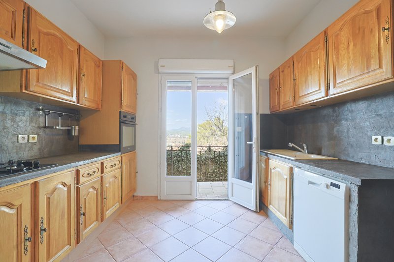 EXCLUSIVITÉ JCG IMMO : retrouvez cette villa T5 en rez-de-chaussée + 1 étage, d'une surface d'environ 107 m2 habitables avec garage de 23m2, sur un terrain de 982m2 offrant une vue dégagée sur Brignoles. Proche des commodités, située en fond d'impasse dans un secteur calme et sans nuisances, maison édifiée en 2005. Elle se compose : Au rez-de-chaussée : une entrée avec placard s'ouvrant sur une pièce de vie avec cheminée, une cuisine indépendante communicante avec le garage et sa mezzanine. 1er étage : un dégagement desservant 4 chambres dont une suite parentale (chambre comprenant sa propre salle de bains avec wc) et une salle d'eau avec wc indépendant sur le palier. À l'extérieur : 3 à 4 stationnements sur le terrain avec une place supplémentaire dans le garage, une terrasse, et un terrain de 982m2 en restanques. Prestations : cheminée insert, convecteurs électriques / Raccordement : eau de ville avec adoucisseur d'eau et tout-à-l'égout / Menuiseries : double vitrage PVC, volets bois et volets roulants électriques. Visite virtuelle disponible sur demande, contactez JCG Immo ! SCIARRINO Maxime Carte de collaborateur no ADC 8306 2024 000 000 145 Immatriculé au RCS sous le no889 308 425 00012 No de police d'assurance 7953190/S17046246 (SPVIE)