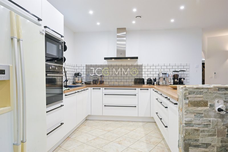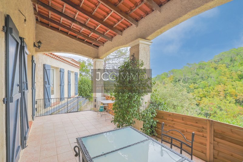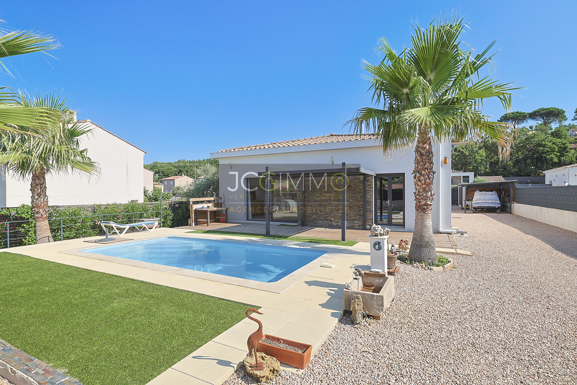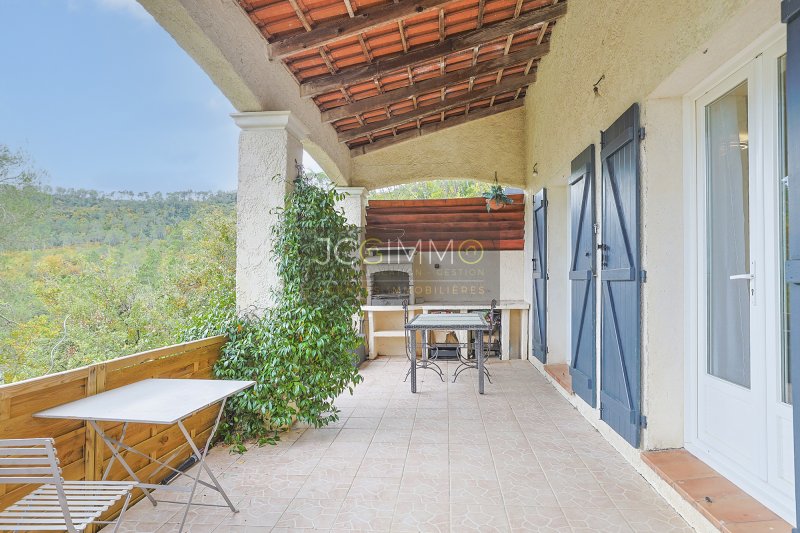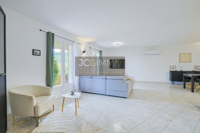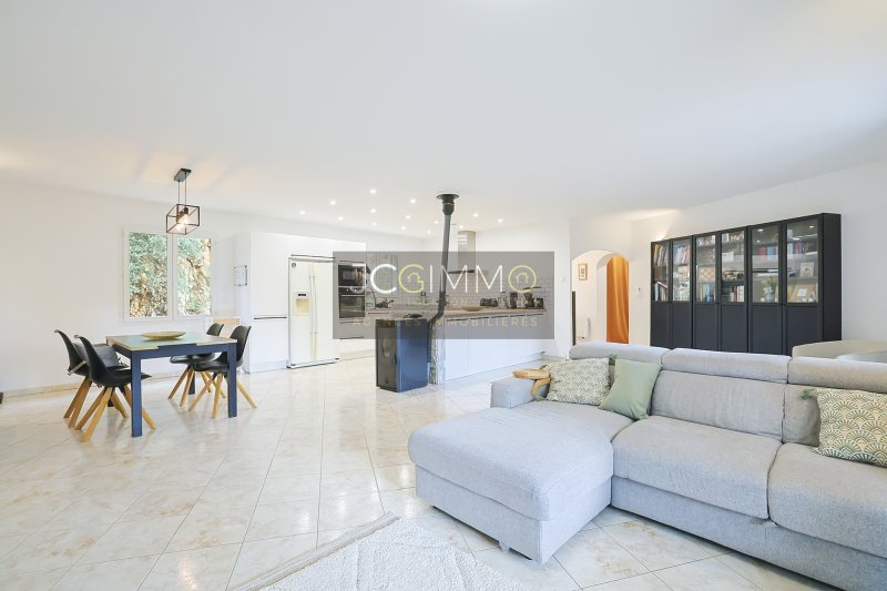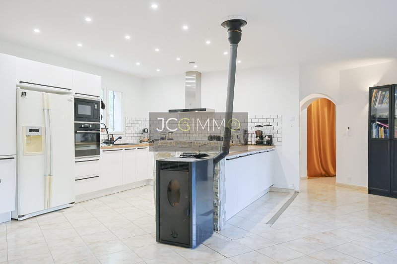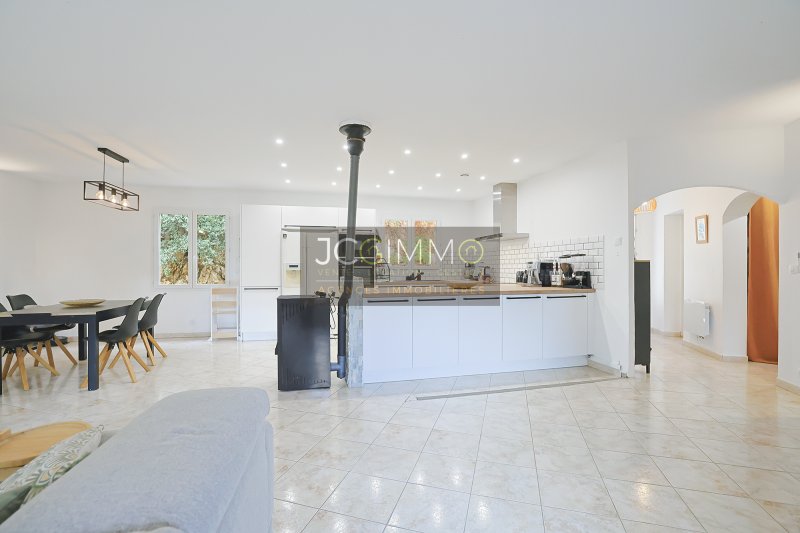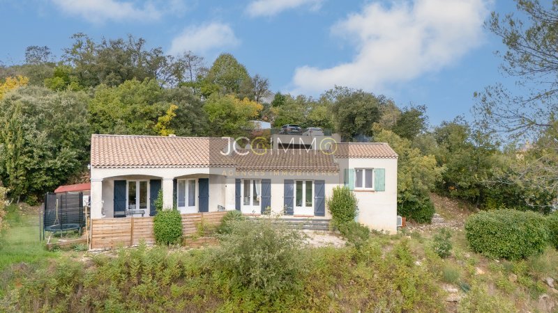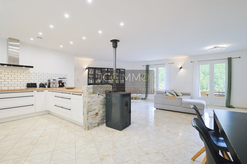 EXCLUSIVITÉ JCG Immo : retrouvez cette maison indépendante habitable entièrement de plain-pied, construite en 2005, sur une parcelle de 1277 m2 bénéficiant d'une vue dominante sur les collines avoisinantes. Située en bout d'impasse, dans un secteur calme et sans nuisances, ce T5 de 132 m2 habitables se compose d'une maison T4 et d'un studio indépendant. À l'intérieur : une entrée donnant sur un séjour climatisé de 52m2 avec cuisine moderne équipée, poêle à granulés et portes-fenêtres s'ouvrant sur une terrasse couverte avec bbq et vue dégagée sur une zone boisée. Puis, un dégagement avec placard, buanderie, wc indépendant, trois chambres (9,5m2, 9,5m2 et 13,5m2), une salle d'eau/salle de bains rénovée, et un dressing viennent compléter le bien. À l'extérieur : un terrain arboré de 1 277m2 avec stationnements pouvant encore accueillir de nombreux aménagements. Prestations : climatisations réversibles x2, poêle à granulés / Menuiseries : double vitrage pvc, volets bois / Raccordement : eau de ville tout à l'égout + pompe de relevage / Prestation supplémentaire : fibre, vmc Taxe foncière : 2390EUR. Visite virtuelle disponible sur demande, contactez JCG Immo ! SCIARRINO Maxime Carte de collaborateur no ADC 8306 2024 000 000 145 Immatriculé au RCS sous le no889 308 425 00012 No de police d'assurance 7953190/S17046246 (SPVIE)
