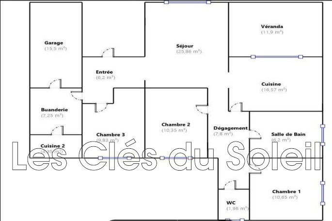 Elle se compose d'un séjour avec cheminée et climatisation, d'une cuisine indépendante, de 3 chambres, ainsi que d'une buanderie et d'un cellier.