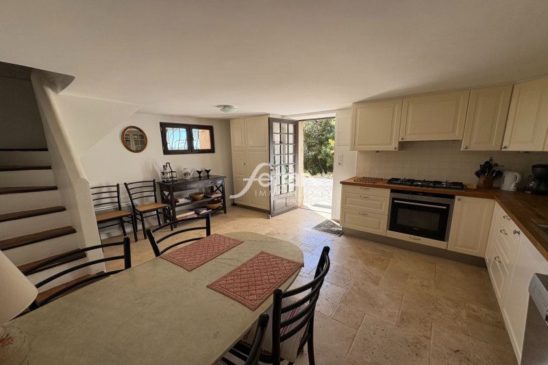 Maison avec beaucoup de charme avec un placement exceptionnelle. Construction sur 2 niveaux avec une vue panoramique sur le village de Callas et les montagnes. La maison est autour de 60 m² + annexe de 18 m². Beau terrain de 4.700 m² avec des oliviers. Grande piscine de 12x4 m. Comprenant au RDJ : Cuisine avec salle à manger et accès sur la terrasse, salle d'eau avec wc. À l'étage, salon avec cheminée, 2 chambres avec placards, salle d'eau avec wc. Annexe avec une pièce/chambre. Plusieurs terrasses, chacune avec une vue splendide. Un petit bijou pour des amoureux de la nature.