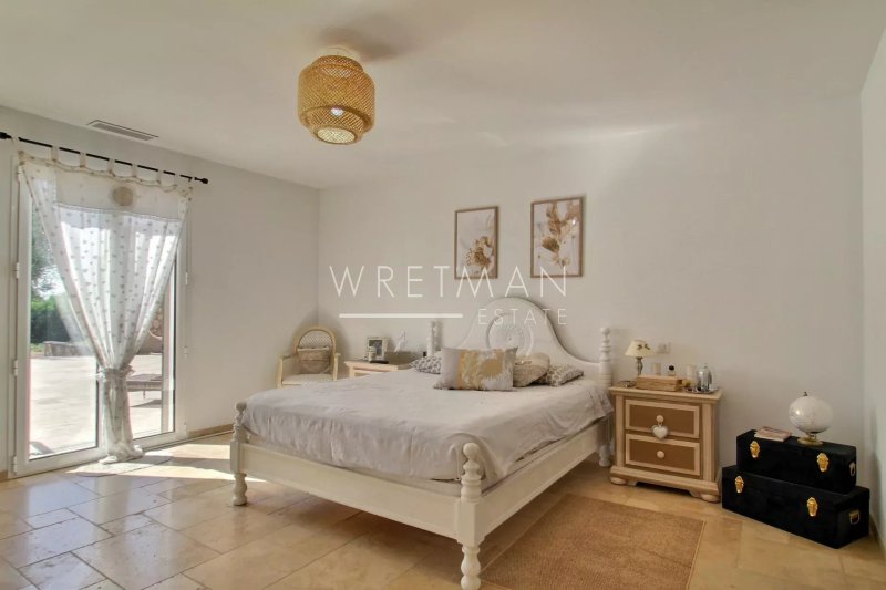 À seulement quelques pas du village, cette charmante maison allie confort moderne et élégance provençale. Construite récemment, elle offre de beaux détails tels que des sols en travertin et des baies à galandage qui prolongent naturellement l’espace de vie vers l’extérieur, créant une belle continuité dedans–dehors.