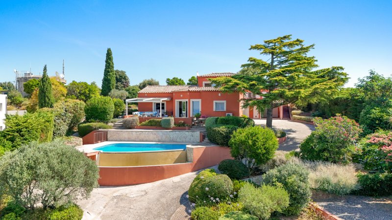 A la Californie à Carqueiranne, très belle villa de 160 m2, orientée sud, avec vue panoramique mer (Toulon, Carqueiranne, Giens, Iles) Au rdc, salon/salle à manger de 55 m2, cuisine et arrière-cuisine, buanderie, 2 chambres de 13 m2 chacune, sdb, wc et espace accueil Au 1er étage, grande chambre de 23 m2 avec accès sur un balcon/tropézienne de 15 m2 avec vue dominante sur la mer. Salle de bain, wc et un espace complémentaire dressing, chambre d'appoint Belle piscine orientée sud avec vue mer et espace jacuzzi Terrain de 1800 m2 paysagé et bien entretenu Garage et local technique/atelier - Stationnement possible de 3 véhicules en plus du garage A l'arrière de la villa,très belle vue panoramique sur la nature et sur toute la région de Hyères. Un coup de coeur à voir rapidement Pour de plus amples reneignements veuillez contacter M. Daniel Bricka au 06.24.25.44.28 Les informations sur les risques auxquels ce bien est exposé sont disponibles sur le site Géorisques https://www.georisques.gouv.fr