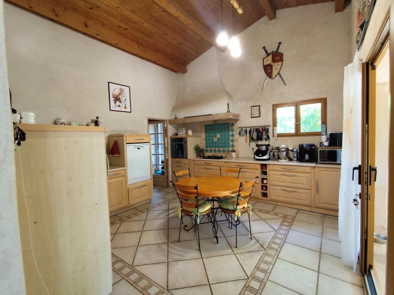 A l'extérieur : une piscine 5x10, un grand terrain avec nombreux oliviers, un atelier pour un espace bricolage ou rangement.