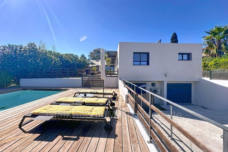 Belle villa moderne sur un terrain clos de 745 m² avec piscine au sel (8x4 m) et garage située dans une petite résidence de seulement 5 maisons. La villa se compose d'une entrée ouvrant sur un vaste séjour avec salle à manger et cuisine ouverte entièrement équipée. Une grande mezzanine fait office de bureau. Deux chambres se partagent une salle de bains, avec WC indépendant. La suite parentale bénéficie d'un dressing et d'une salle d'eau avec WC.
