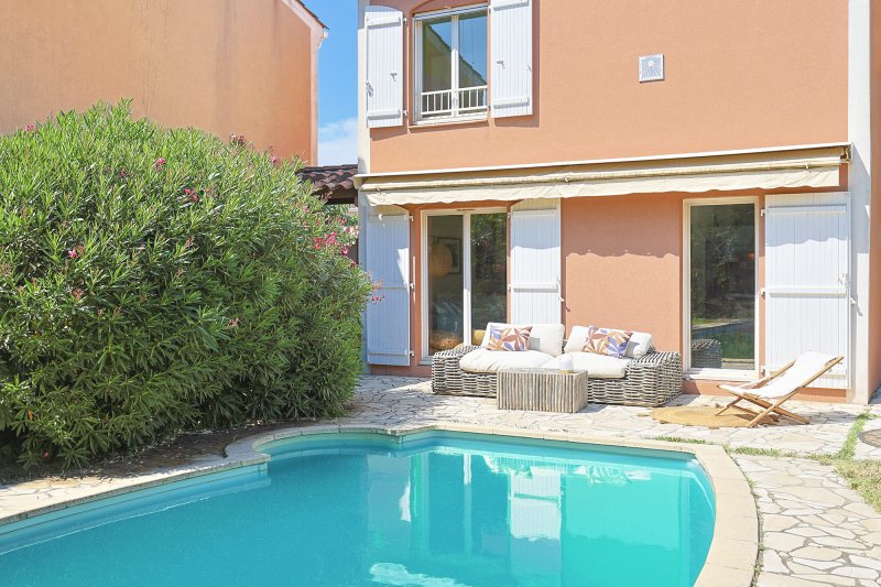 JCG IMMO est fier de vous presenter et nulle part ailleurs! À seulement quelques pas du centre-ville de Cogolin, dans un environnement résidentiel, découvrez cette maison pleine de charme, baignée de lumière, à la décoration esprit bord de mer, avec piscine, garage attenant, et une répartition des espaces idéale pour une famille. D'une surface habitable d'environ 102 m2 et 24 m2 de garage, cette maison offre un cadre de vie chaleureux et fonctionnel, aussi agréable en résidence principale qu'en maison de vacances, à seulement 10 minutes des plages et 15 minutes de Saint-Tropez. Mitoyenne d'un coté par le garage. Volumes bien pensés sur 3 niveaux Au rez-de-chaussée, vous profitez d'une pièce de vie traversante à la déco soignée, avec : Cuisine ouverte Séjouir climatisé avec baies vitrées ouvrant sur la terrasse et la piscine : exposistion sud WC indépendant Garage attenant de 24 m2 avec porte motorisée et espace buanderie Le 1er étage est idéal pour les enfants ou les invités : Trois chambres aux surfaces équilibrées avec placards Une salle de bain avec baignoire et double vasque Toilettes indépendant Le 2e et dernier étage est entièrement dédié à l'espace parental : Une suite de 14 m2 avec salle d'eau privative Chaque niveau a sa fonction, pour un confort optimal et une circulation fluide dans toute la maison. Extérieur Une terrasse idéale pour les repas en famille, protégée par un store banne, et une piscine avec liner neuf et pompe à chaleur pour en profiter du printemps jusqu'à l'automne. Le stationnement est aisé grâce aux places disponibles directement devant la maison. Caractéristiques techniques Surface habitable : 101,59 m2 Garage : 23,74 m2 Terrain 387m2 Chambres : 4 Salles d'eau / bain : 2 WC : 2 Exposition : Sud Taxe foncière : 1500EUR (secondaire) Lotissement : faibles charges de 8EUR/an Leslie GUIBERT Immatriculé au RCS sous le no 512302431 RSAC Toulon No de police d'assurance MMA IARD 775652125MM