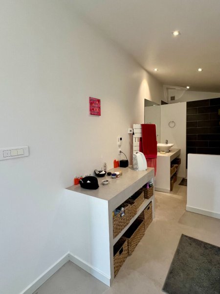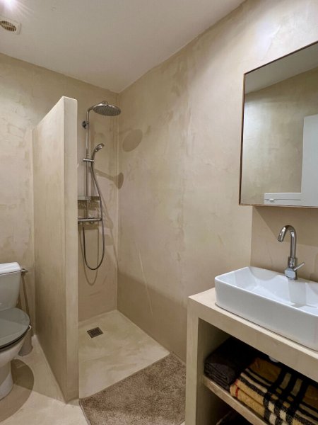 La maison se compose d'une cuisine aménagée et équipée ouverte sur la salle à manger, d'un vaste salon lumineux offrant une vue imprenable sur le rocher de Cotignac, de trois chambres, de deux salles d'eau avec toilettes, ainsi que d'une pièce technique.