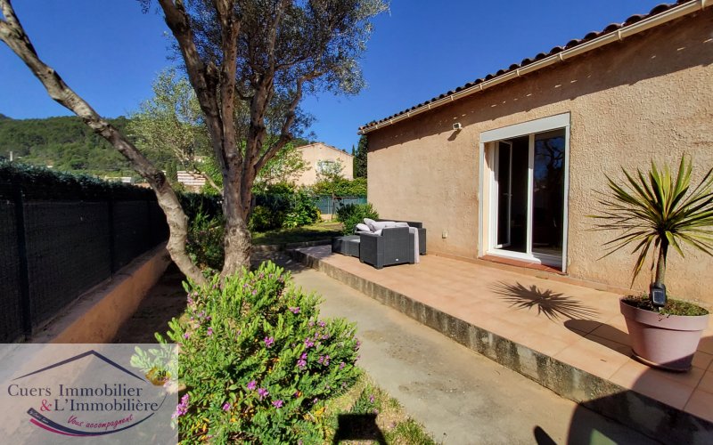 Cuers, située à quelques pas du centre de Cuers et de toutes les commodités, cette agréable villa T3 de plain-pied d'environ 77m2 vous séduira par son emplacement privilégié et son confort de vie. Idéale pour une petite famille ou un couple recherchant le confort tout en restant à proximité des commerces, écoles et transports. La maison se compose d'une belle pièce de vie lumineuse, d'une cuisine fonctionnelle, de deux chambres dont une avec placard, d'une salle de bains et de toilettes séparées. Vous apprécierez également le garage attenant de 16m2 avec mezanine, offrant un accès direct à la maison, ainsi qu'un jardin facile d'entretien avec abri de jardin et terrasse couverte. Le tout sur une parcelle aménagée de 337m2. Menuiseries PVC double vitrage, volets roulants ... Ne manquez pas cette opportunité rare sur le secteur ! Contactez-nous pour organiser une visite et découvrir tout le potentiel de cette villa. Les informations sur les risques auxquels est exposé ce bien sont disponibles sur le site Géorisques : www.georisques.gouv.fr