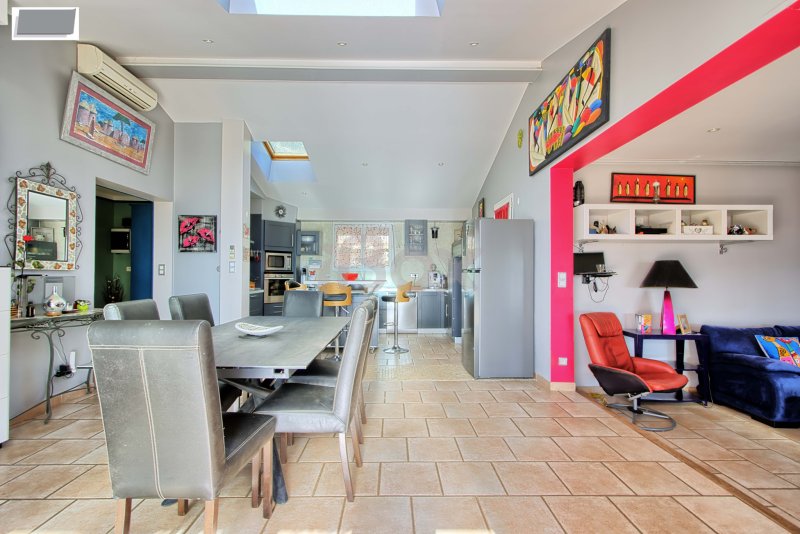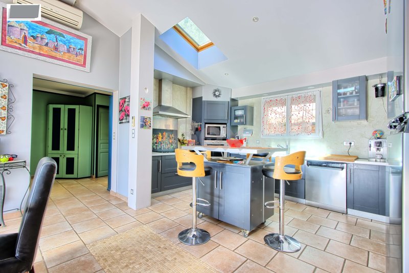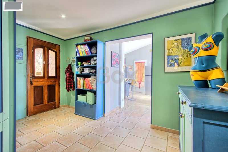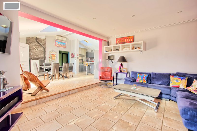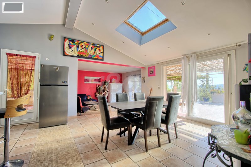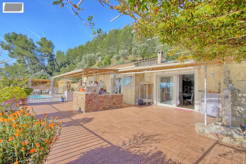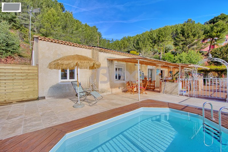 CUERS - MAISON PLAIN PIED INDIVIDUELLE DE 130 M2 3 CHAMBRES + MAISONNETTE T2 DE 44 M2 SUR TERRAIN DE 3542 M2 AVEC PISCINE Maison individuelle de plain pied de 130 M2 comprenant : entrée avec placard, cuisine aménagée et équipée ouverte sur le séjour, 3 chambres (possibilité de 4ème chambre), salle de bains, cellier, 2 wc. Dépendance et atelier.Belle terrasse donnant sur une piscine chauffée avec belle vue dégagée. Maisonnette indépendante de 44 M2 comprenant : cuisine ouverte sur le séjour, 1 chambre, salle d'eau, wc (loué actuellement à 738+80EUR). Le tout sur un beau terrain de 3542 M2 sans vis à vis. LES PLUS : panneaux solaires, stationnement aisé, poêle à granules, climatisation réversible