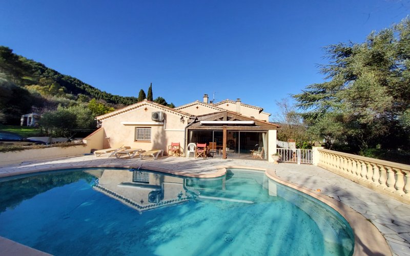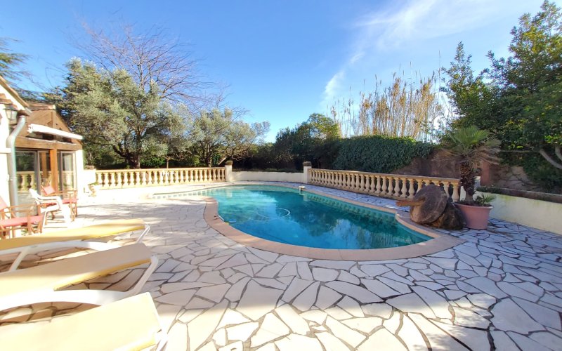 Cuers, proche accès autoroutes et à proximité des commodités, découvrez cette propriété comprenant une villa de type 6 de 176m2, un appartement de type 3 d'environ 59m2, deux garages, une piscine et plusieurs dépendances. La villa principale, actuellement libre de toute occupation, comprend : - au rez-de-chaussée : une grande véranda, une cuisine fermée, un salon/salle à manger avec cheminée foyer fermé, un wc, un grand dégagement avec coin bureau donnant sur une grande chambre avec sa salle d'eau et un wc séparé. - à l'étage : un dégagement désservant quatre chambres, une salle de bains et un wc. Côté extérieur, vous pourrez profiter d'une piscine avec balnéo, deux garages (87m2) et plusieurs dépendances (petit hangar en tôle, abri bois et cabanon). L'appartement de type 3 d'environ 59m2, situé au rez-de-jardin comprend un séjour, une cuisine, un dressing, deux chambres, une salle d'eau et un wc complété par un abri voiture et une place de stationnement. Il est actuellement loué pour un loyer mensuel de 730EUR charges comprises. Menuiseries PVC double vitrage, climatisation réversible et présence d'un forage. A découvrir rapidement ! Les informations sur les risques auxquels est exposé ce bien sont disponibles sur le site Géorisques : www.georisques.gouv.fr