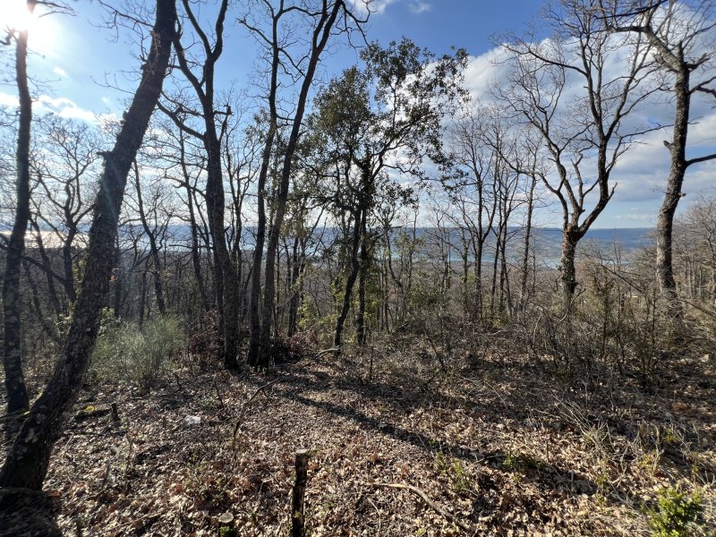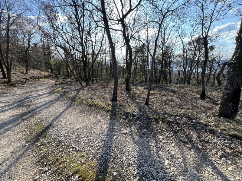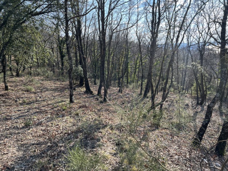Vue sur le lac de Sainte-Croix, exposition Sud-Ouest, jolie parcelle boisée essentiellement de chênes, légèrement vallonée, accès facile par chemin privé, pour loisir, camping interdit, possibilité de stationnement à la journée avec une voiture de tourisme ou un van, non accessible et strictement interdit à un gros camping-car. Zone naturelle protégée, fréquentée par de nombreuses espèces animales, chevreuils, sangliers, renards, vautours, aigles royaux etc. Pour amoureux de la nature et respectueux de la faune et de la flore sauvage uniquement.