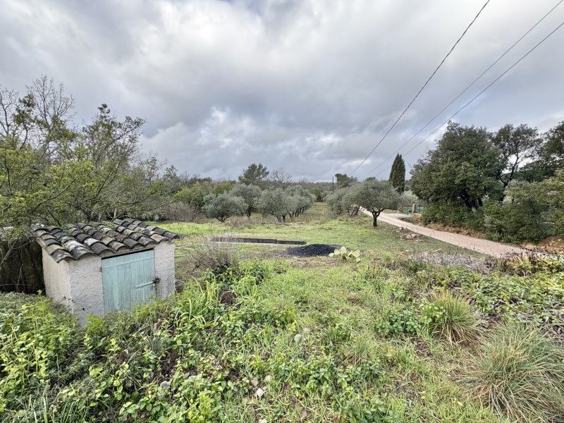 Méounes - Terrain naturel de 6520m2 au calme complet bénéficiant d'un cabanon d'une superfice d'environ 45m2 avec l'electricité. Il y a également la présence d'un forage et d'oliviers sur le terrain.
