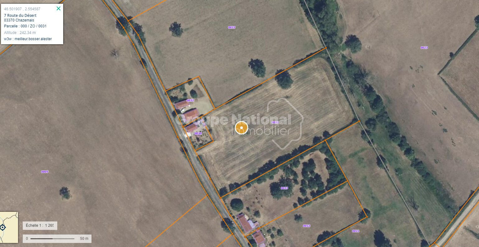 EN EXCLUSIVITÉ ! Votre agence immobilière, spécialiste de l'immobilier dans le Centre-Var, vous propose à la vente, sur la commune rurale de CHAZEMAIS (03), parcelle de terre de 16123 m². Située à 3 minutes en voiture du coeur du village de 507 âmes. CHAZEMAIS étant une commune dite 'R.N.U', c'est le règlement national d'urbanisme qui s'applique en l'absence de document d'urbanisme. Il n'existe donc pas de zone. La meilleure façon de connaitre les projets autorisés sur cette parcelle est de déposer une demande de certificat d'urbanisme opérationnel (2 mois de délai d'instruction). Les dossiers d'urbanisme déposés en Mairie sont ensuite instruits par les services de la DDT de Montluçon. Pour information, un projet de panneaux photovoltaïques a été déjà refusé. Les informations sur les risques auxquels ce bien est exposé sont disponibles sur le site Géorisques : georisques.gouv.fr. Honoraires à la charge du vendeur. Les informations sur les risques auxquels ce bien est exposé sont disponibles sur le site Géorisques : georisques.gouv.fr.