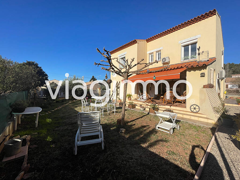 Le terrain de 1 400 m² est soigneusement paysagé et agrémenté d'un potager, d'oliviers, de chênes et d'arbres fruitiers, offrant un cadre naturel agréable et préservé.