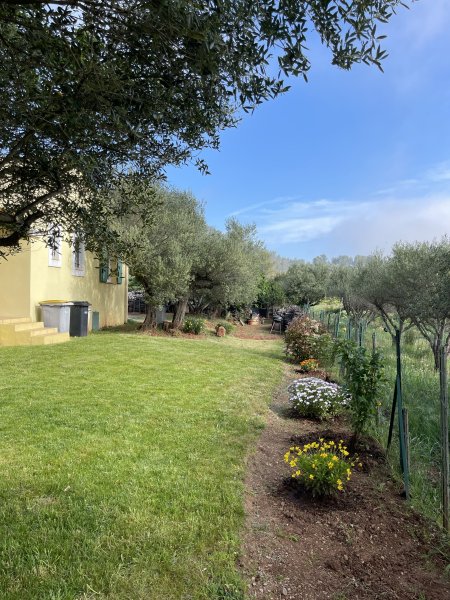 Terrain d'environ 1 400 m² joliment paysager avec oliviers, chênes et arbres fruitiers.