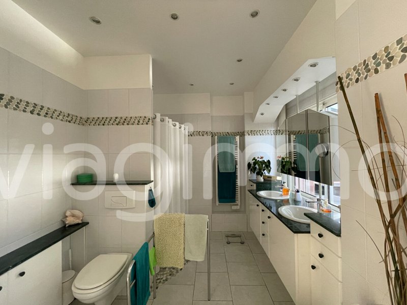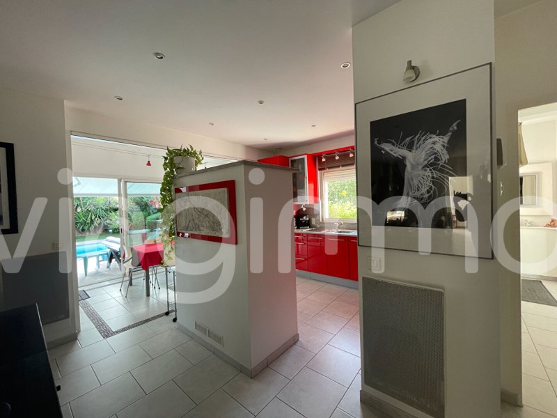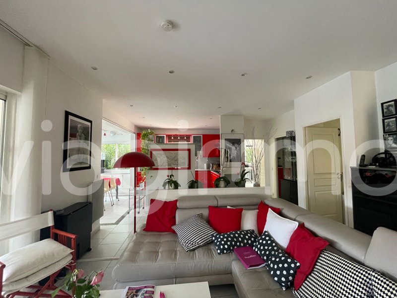 Cette villa ,résolument contemporaine ,vous offre un premier lieu de vie de 126 m2 parfaitement agencé : une entrée ,un grand salon avec cheminée à double foyer , une cuisine totalement équipée, ,3 suites parentales ,un bureau et une buanderie. Adaptée PMR .