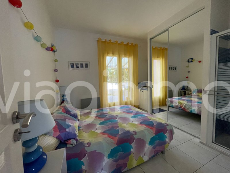 Pool house de 30 m2 avec cuisine , bar , chambre , salle d'eau et WC .